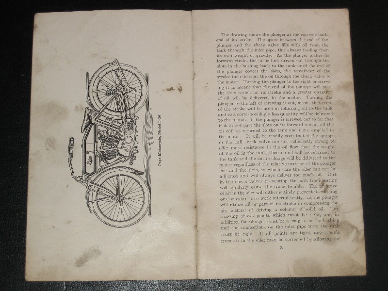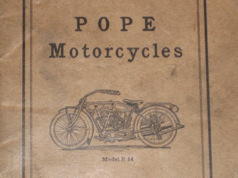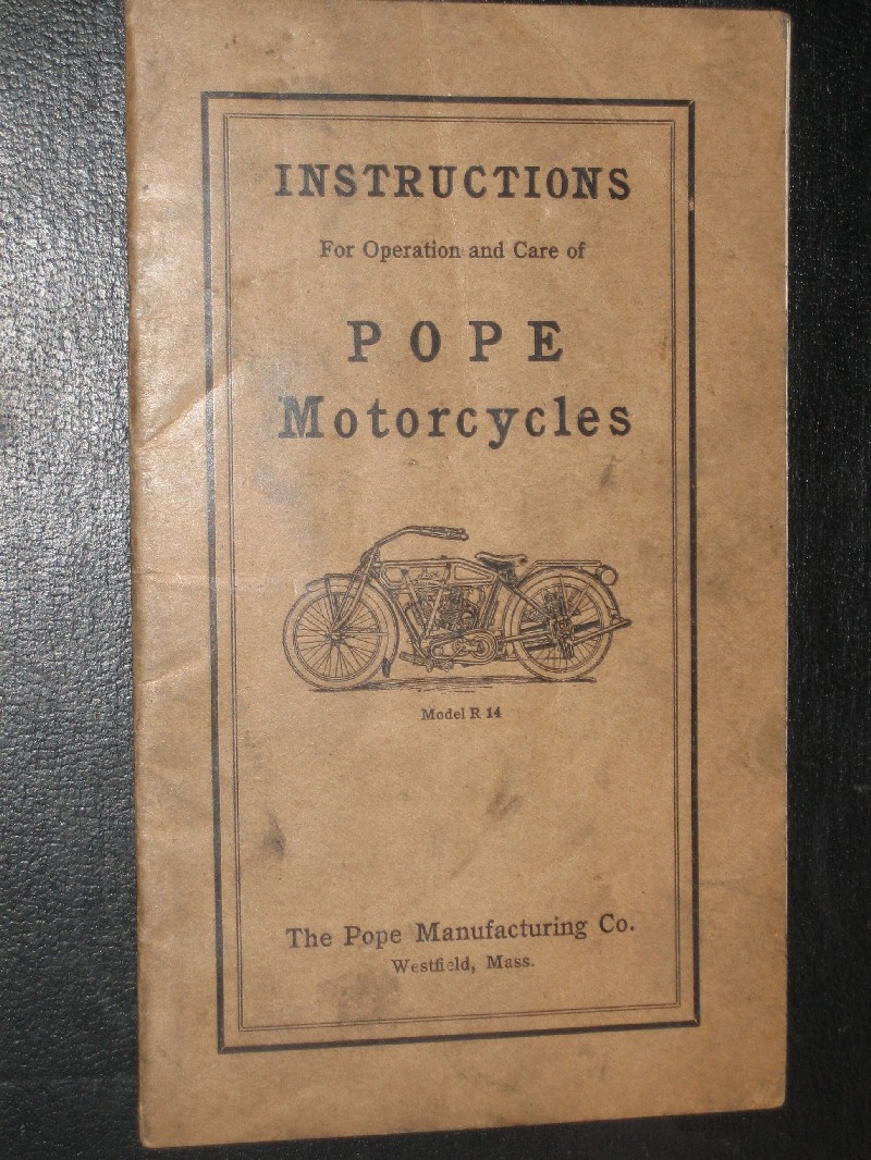 This is an original 1914 Pope motorcycle users instruction manual. It is in fairly good condition with no torn or dog-eared pages. It has some evidence of use. The asking price is $350